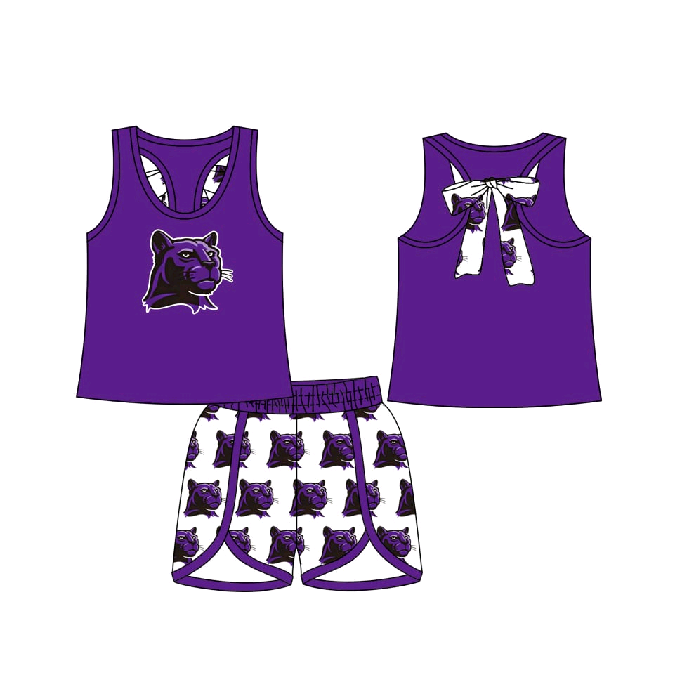 MOQ 5 pcs each style Custom Style Team Purple Girls Shorts Set