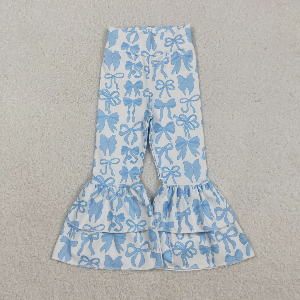 P0886 Coquette Bows Sky Blue Yoga Girls Big Fared Pants