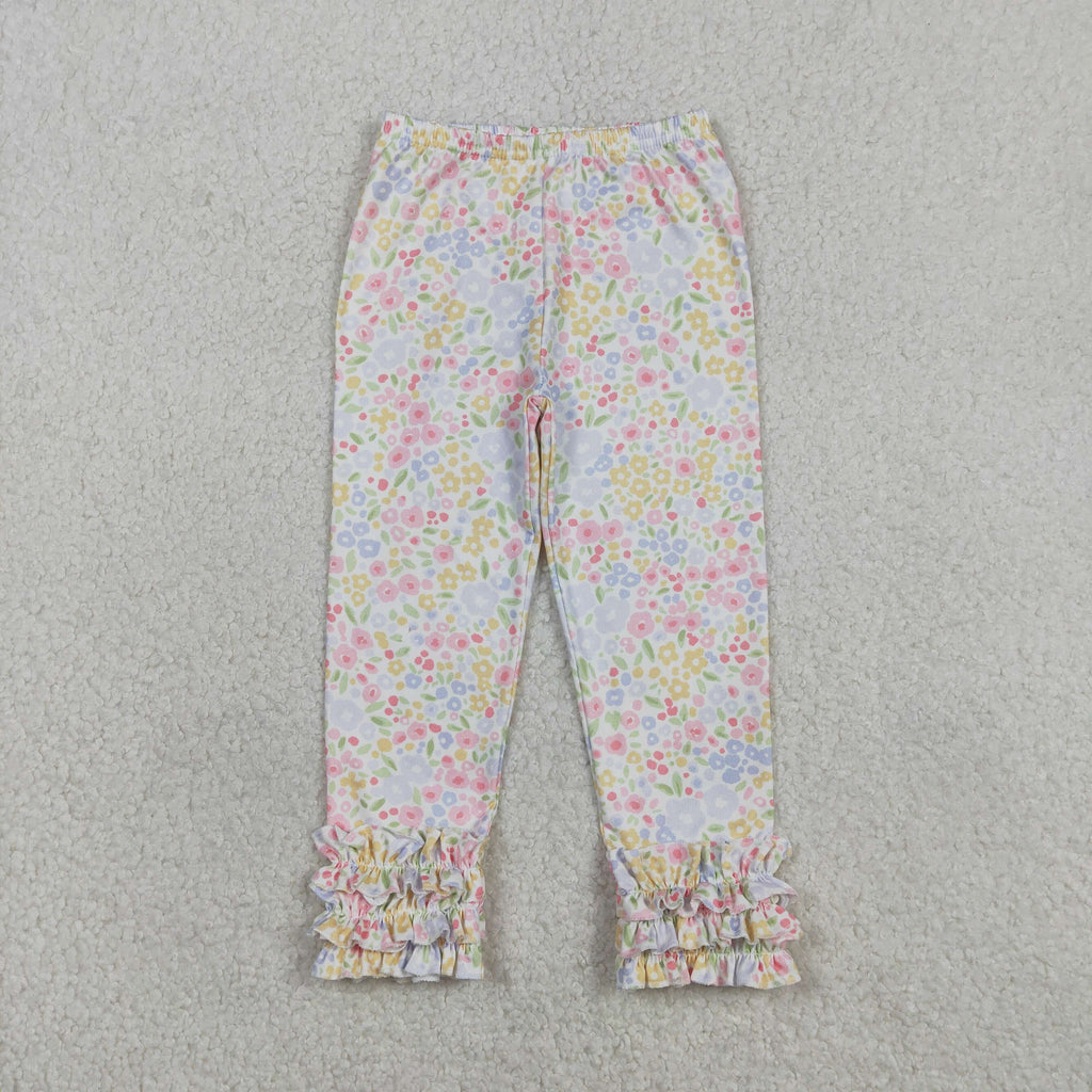 P1005 Flower Floral Ruffles Leggings Girls Pants
