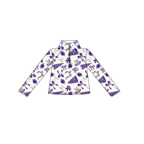 Preorder MOQ 5 Pcs GLD1287 Go Team Football Purple Yoga Zipper Pullover Girls Skorts Set