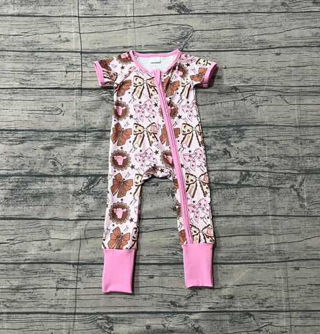 Preorder Samples SR3763 Western Cowgirl Bows Pink Baby Sleepers Romper
