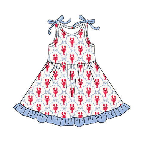 Preorder Samples GSD3389 Crawfish Bows Blue Red Girls Dress