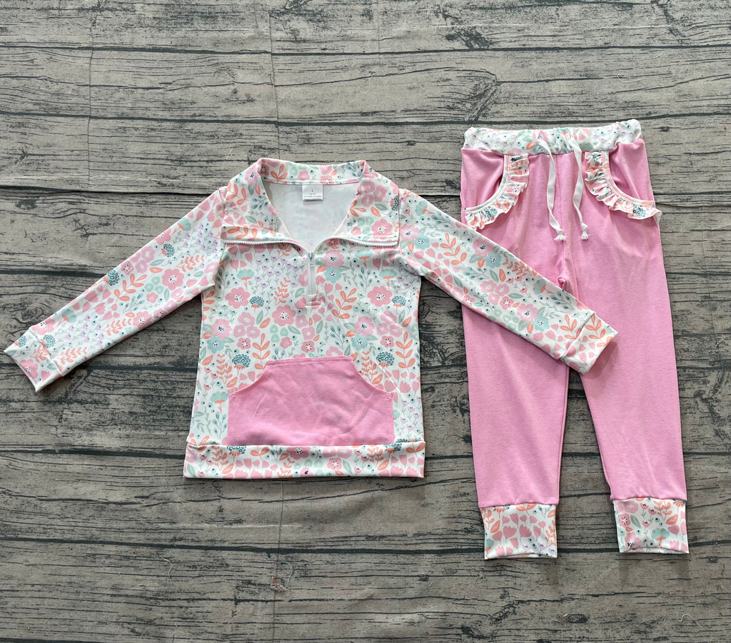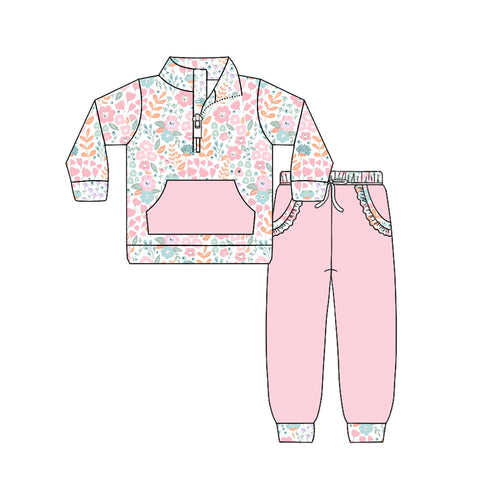 Preorder Samples GLP3279 Flower Floral Light Pink Ruffles Pullover Girls Set