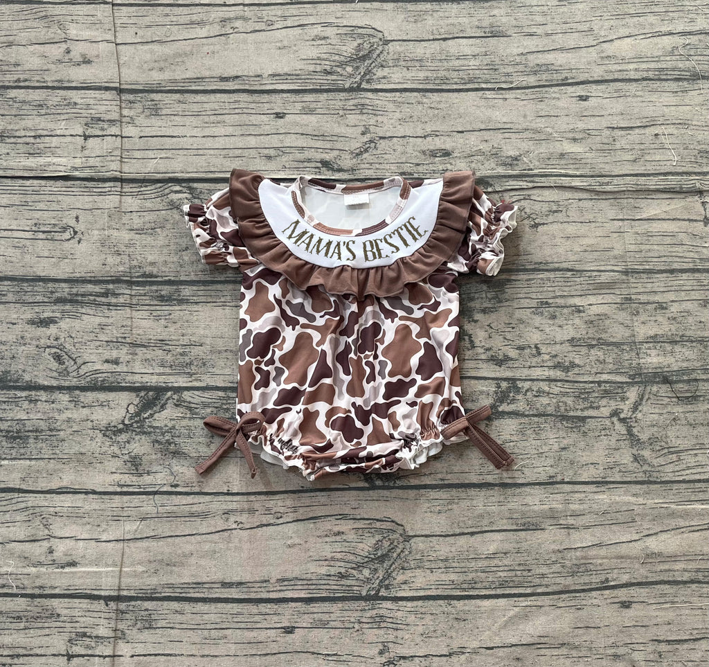 Preorder Samples SR3888 Embroidery MAMA'S Bestie Camo Brown Baby Girls Romper