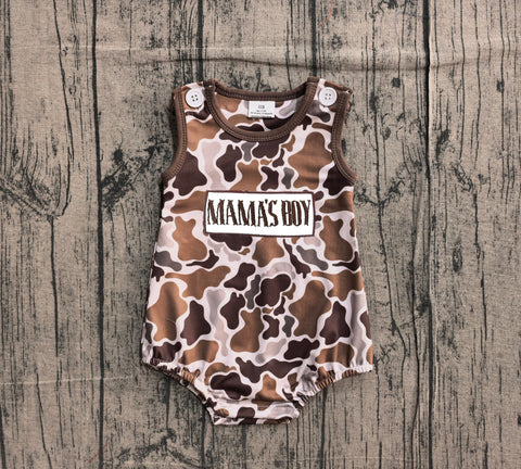 Preorder Samples SR3889 Embroidery MAMA'S BOY Camo Brown Baby Boys Romper