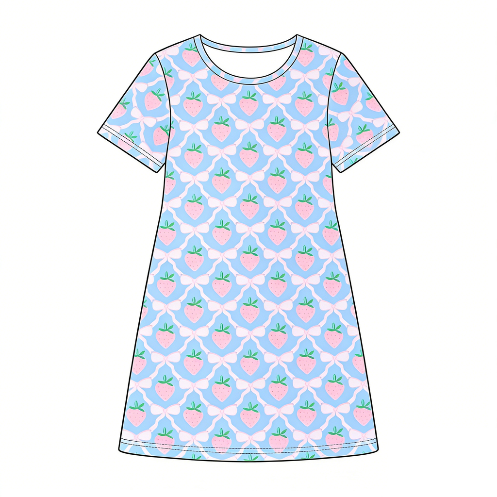 Preorder 02.01 MOQ 5 pcs GSD3527 Strawberry Bows Pink Girl's Dress