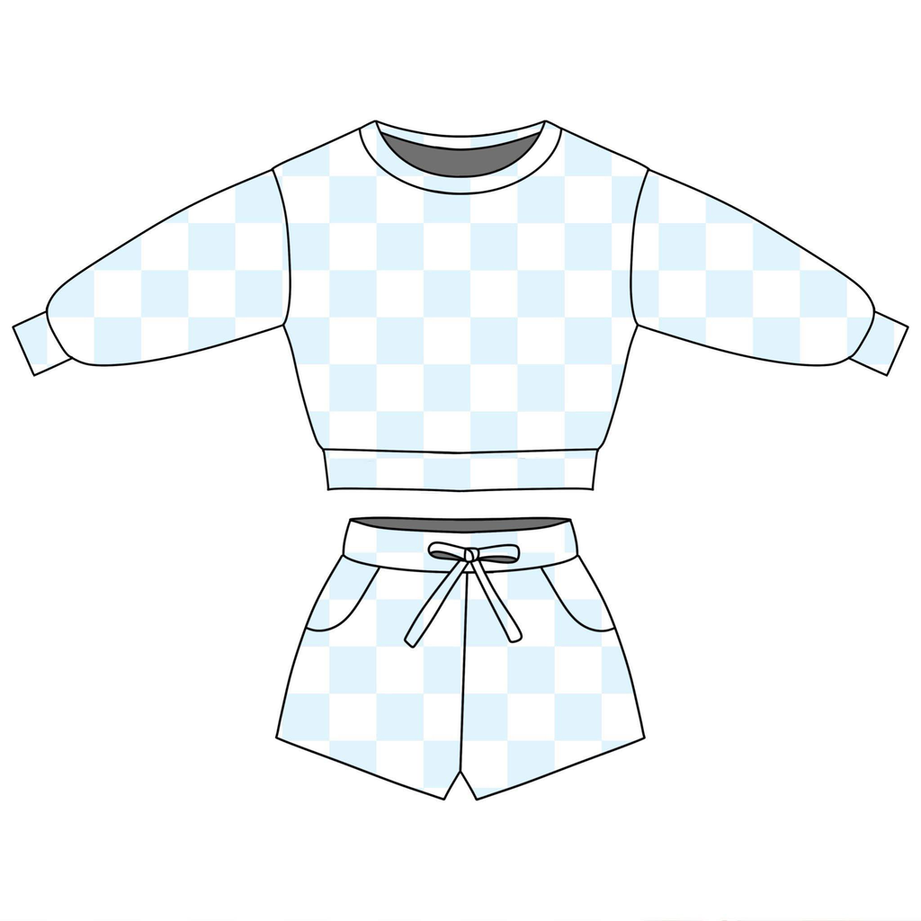 Preorder 02.03 MOQ 5 pcs GLS0088 Light Blue Plaid Long Sleeves Girls Shorts Set