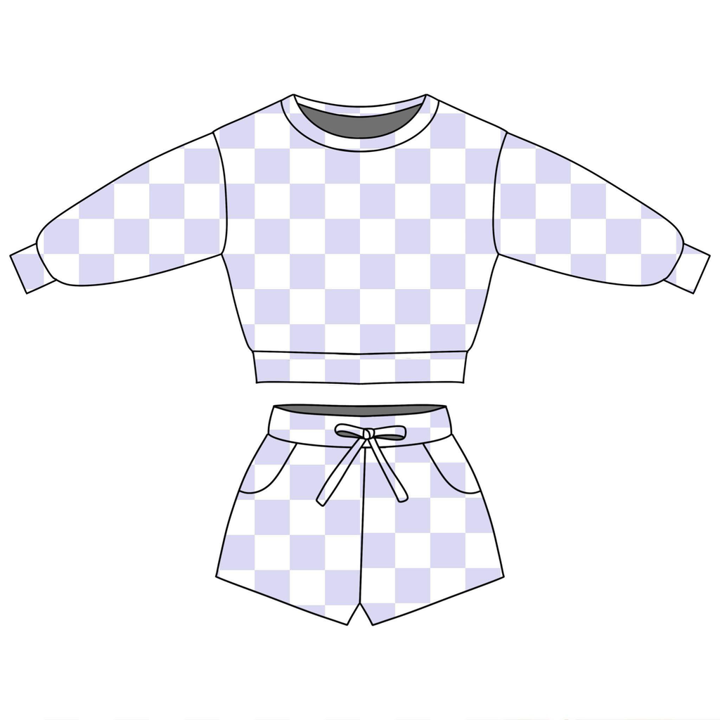 Preorder 02.03 MOQ 5 pcs GLS0090 Light Purple Plaid Long Sleeves Girls Shorts Set