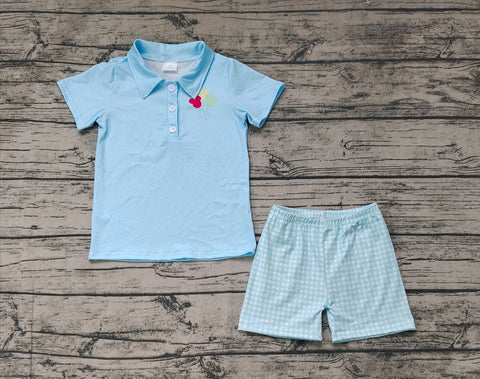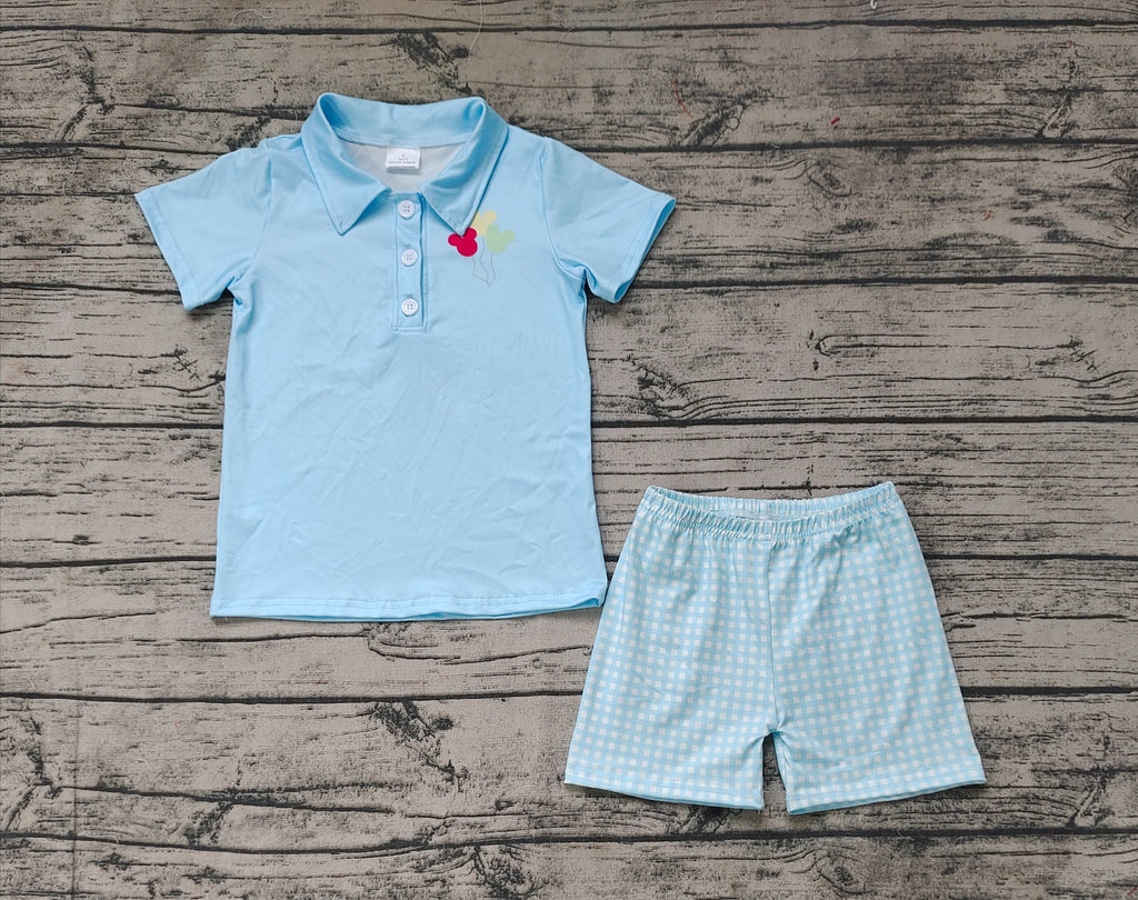 BSSO0683 Cartoon Mouse Blue Plaid Boys Shorts Set