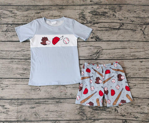 SR3257 Embroidery Crawfish Blue Plaid Red Boys Romper