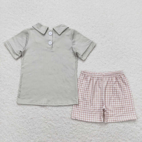 SR3257 Embroidery Crawfish Blue Plaid Red Boys Romper