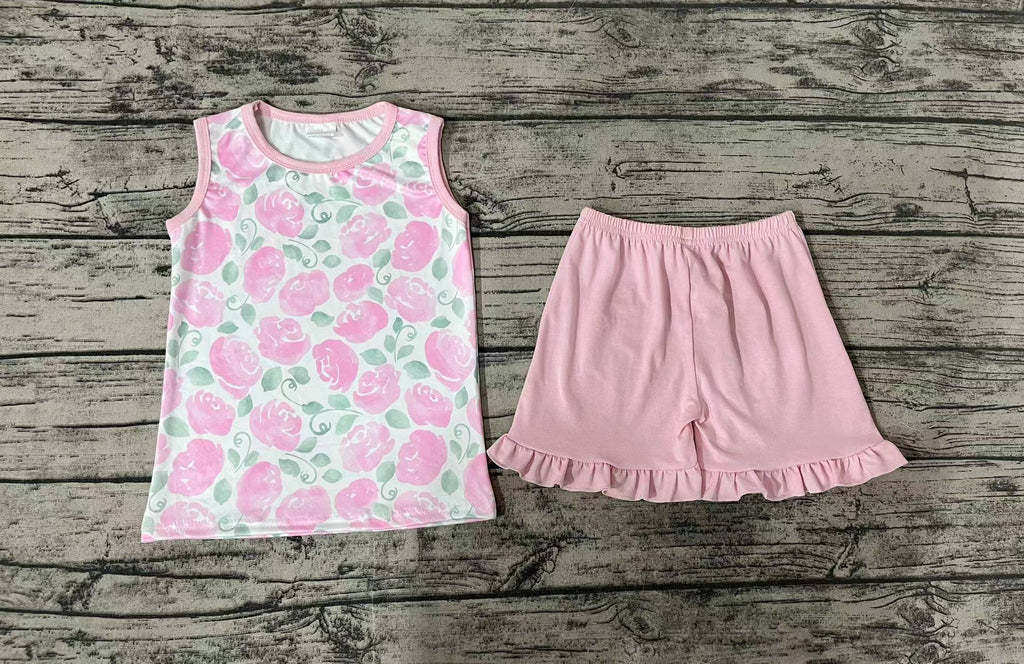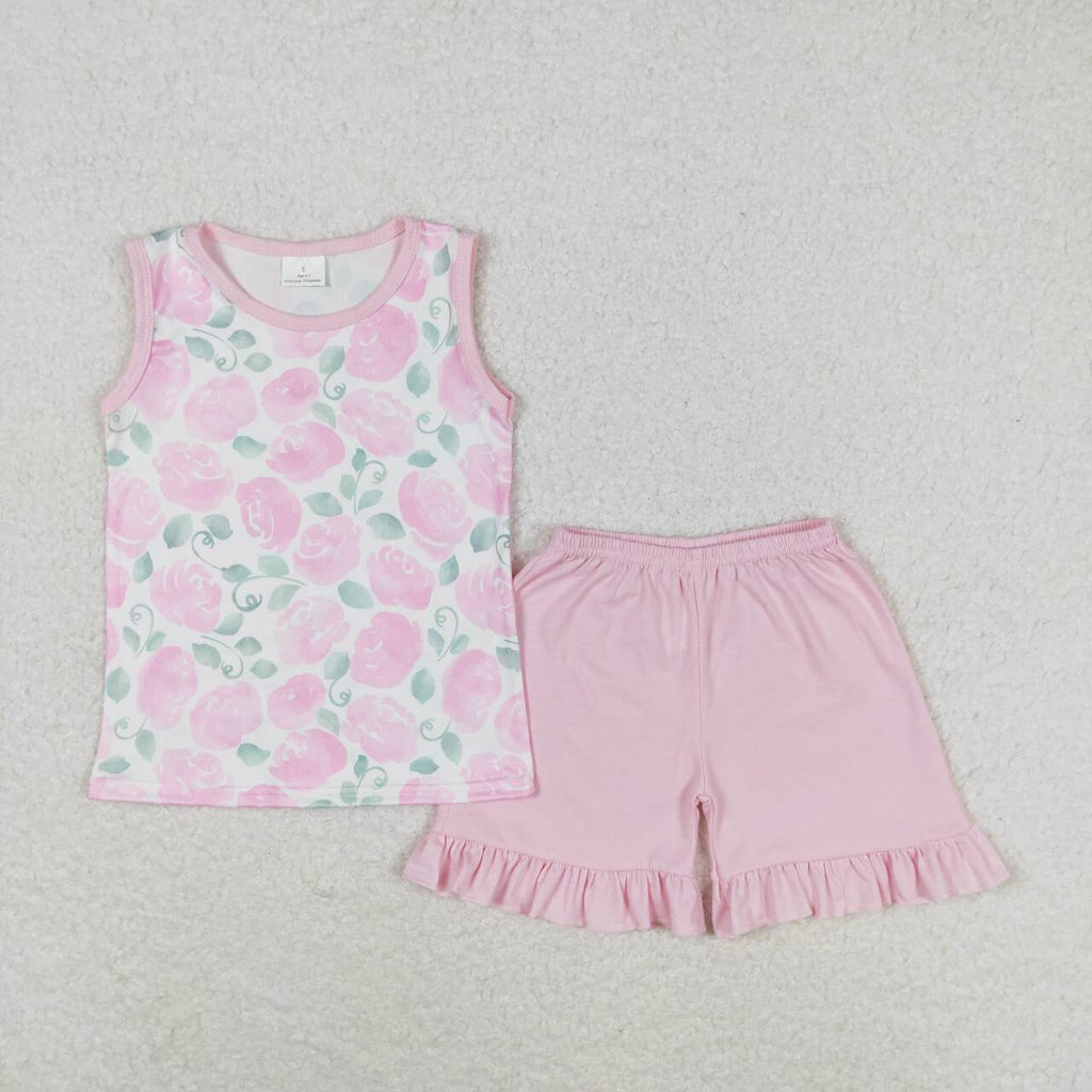 GSSO0975 Flower Rose Pink Girls Shorts Set