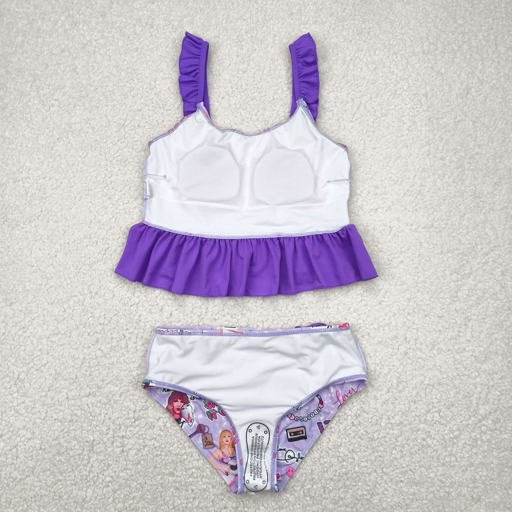 S0389 Singer Star Purple Girls Swimsuit 2 pcs Set