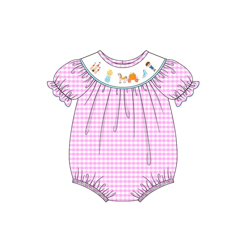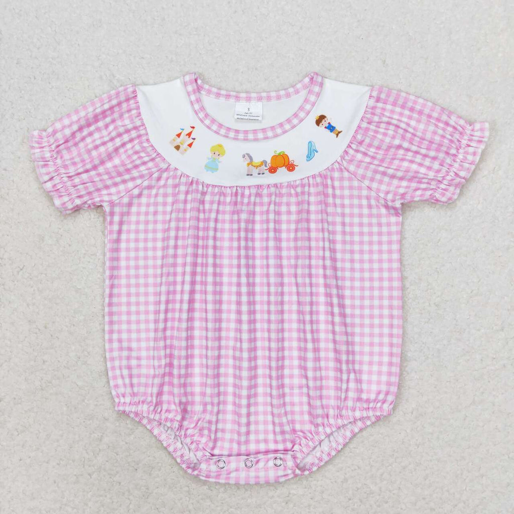 SR1692 Princess Castle Purple Plaid Baby Girls Bubble Romper