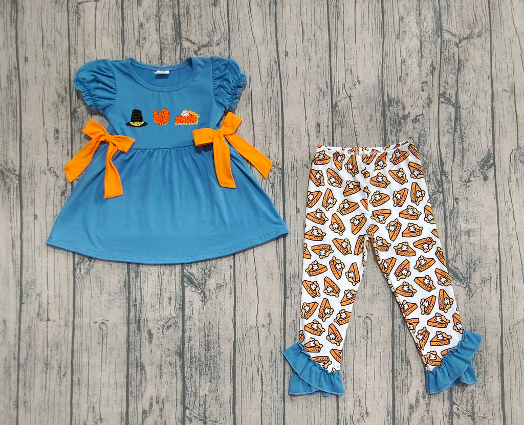 Preorder Samples GSPO2028 Embroidery Thanksgiving Day Turkey Girls Set