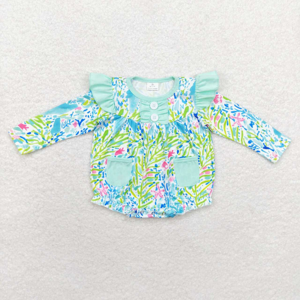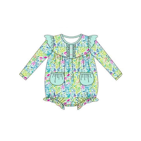 LR1353 Flower Garden Mint Baby Girl Bubble Romper