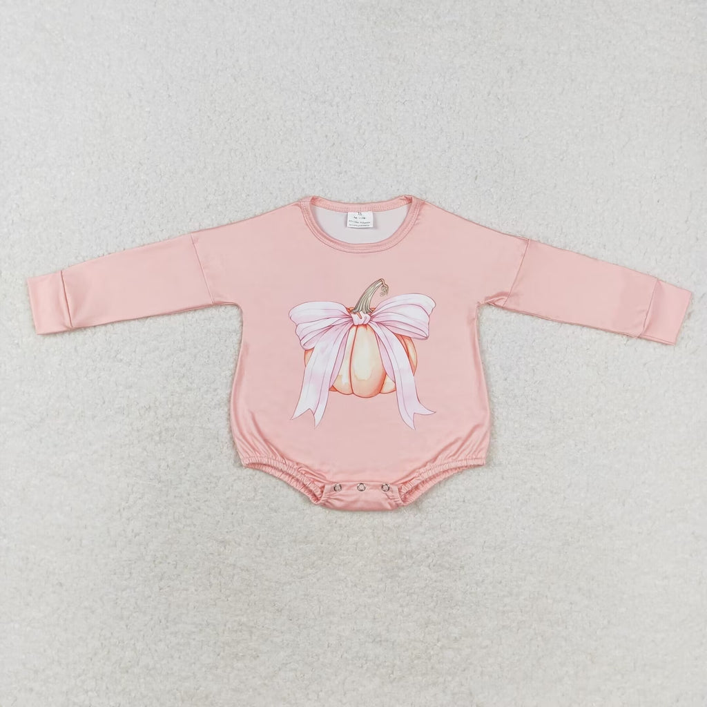 LR1444 Pumpkin Tie Bow Baby Girl Bubble Romper