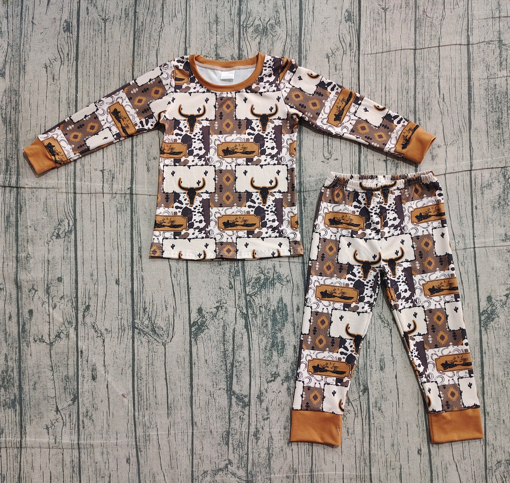 Preorder Samples BLP1200 Western Skull Bull Brown Boys Pajamas Set