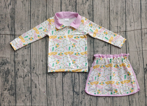 Preorder Samples GLD1334 Mardi Gras Mask Pink Pullover Girls Skorts Set