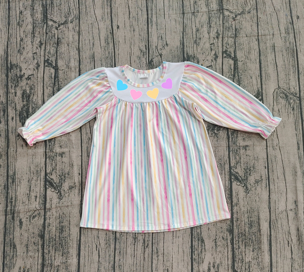 Preorder Samples GLD1335 Embroidery Valentine's Day Love Colorful Stripe Girl's Dress