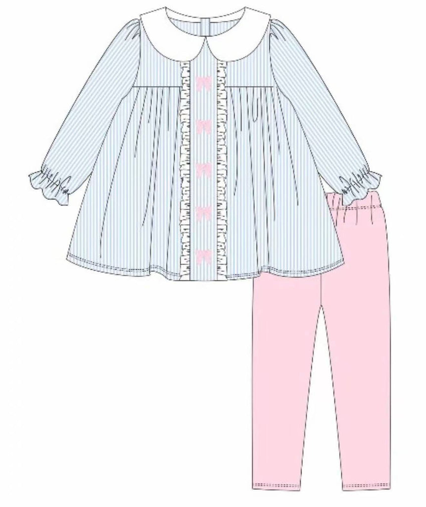 Preorder 10.14 MOQ 5 pcs GLP2909 Bows Stripe Cute Girls Set