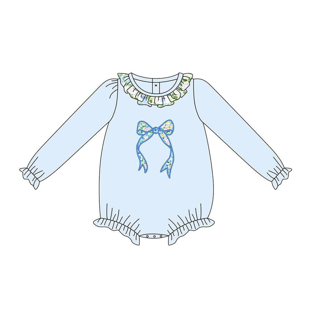 Preorder 10.17 MOQ 5 pcs LR2742 Bows Flower Sky Blue Girls Bubble Romper