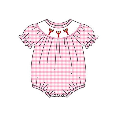 Preorder Samples SR3256 Embroidery Crawfish Pink Plaid Girls Romper