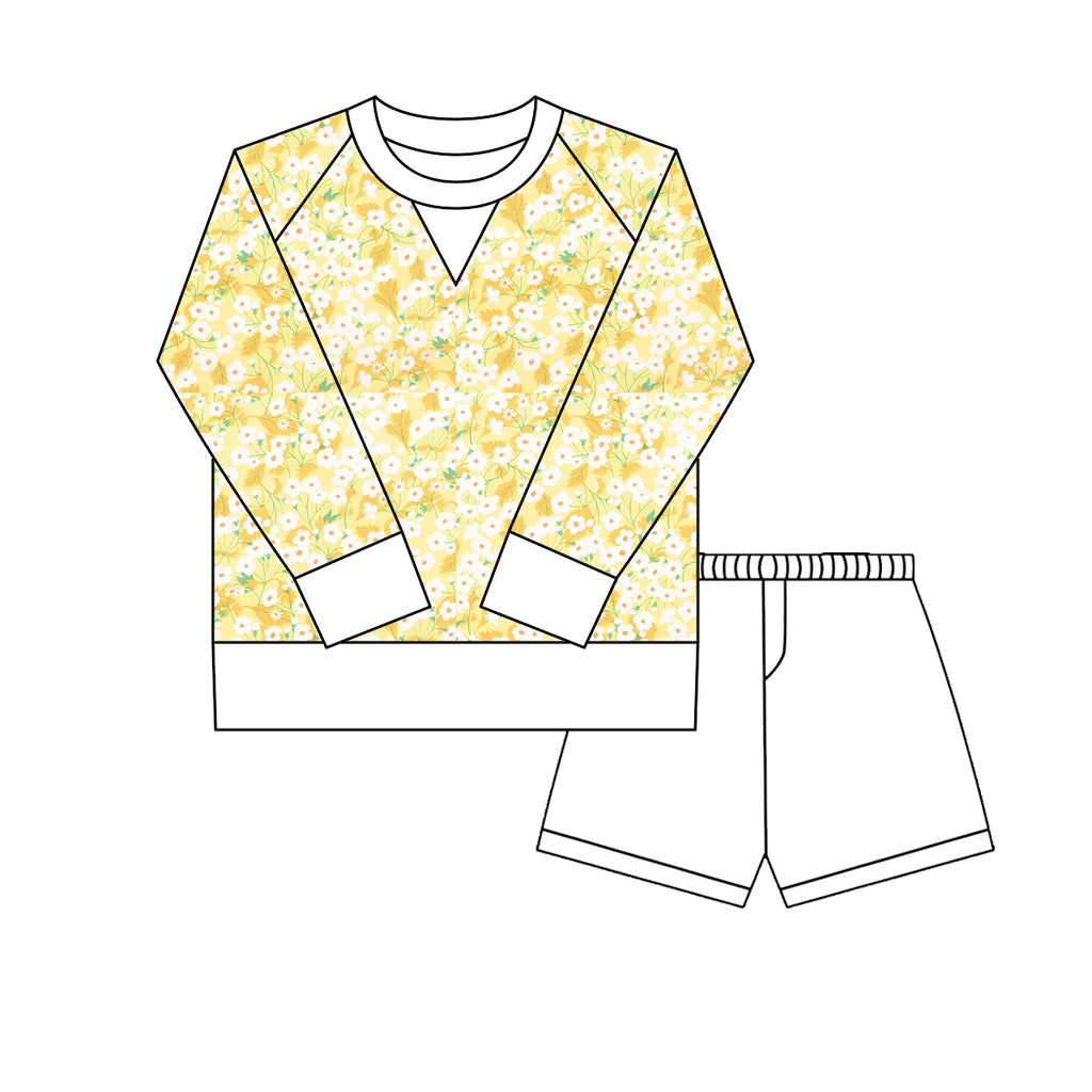Preorder 10.20 MOQ 5 pcs GLS0022 Flower Yellow Yoga Girls Shorts Set