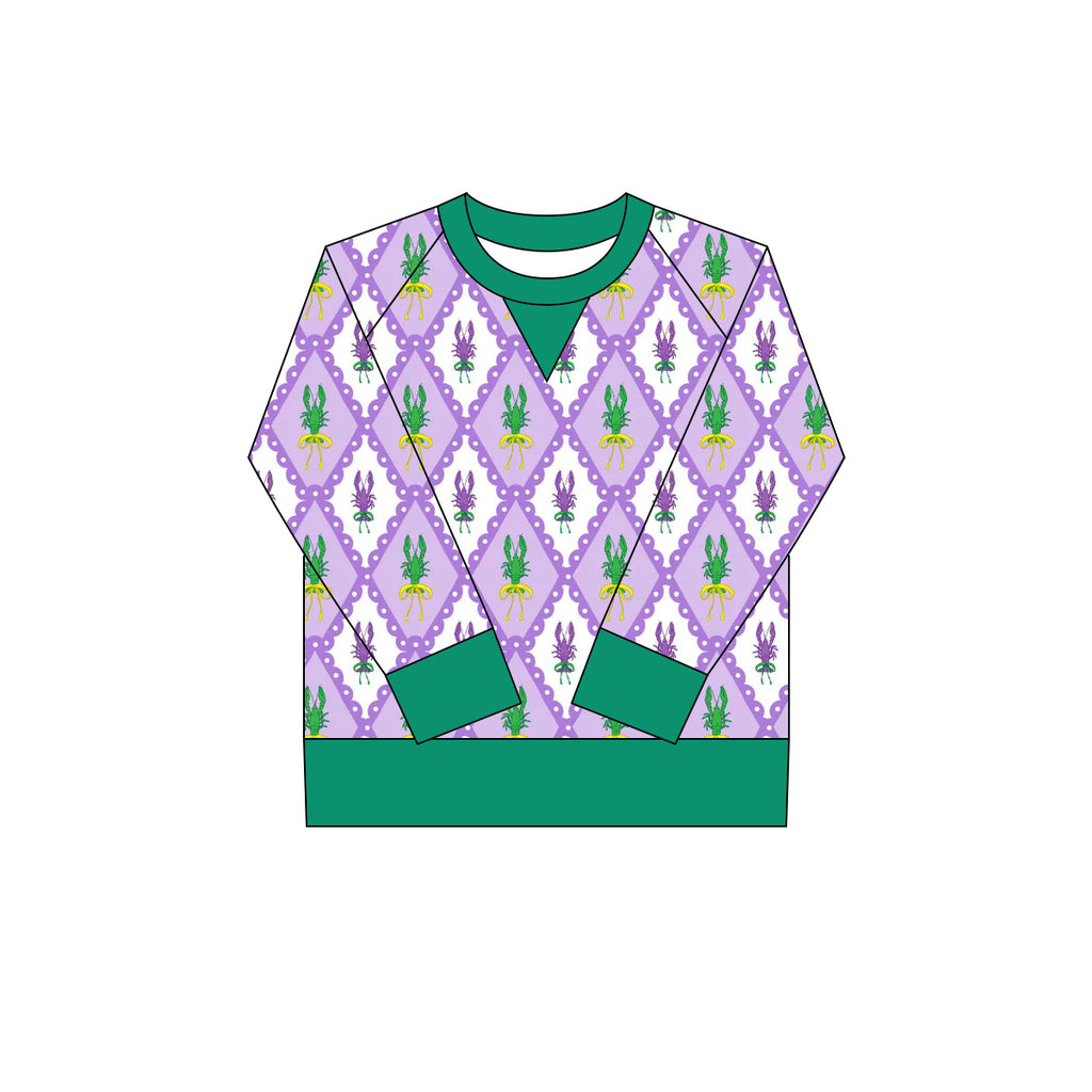 Preorder 10.20 MOQ 5 pcs GT1268 Mardi Gras Crawfish Kids Girls Shirt Top