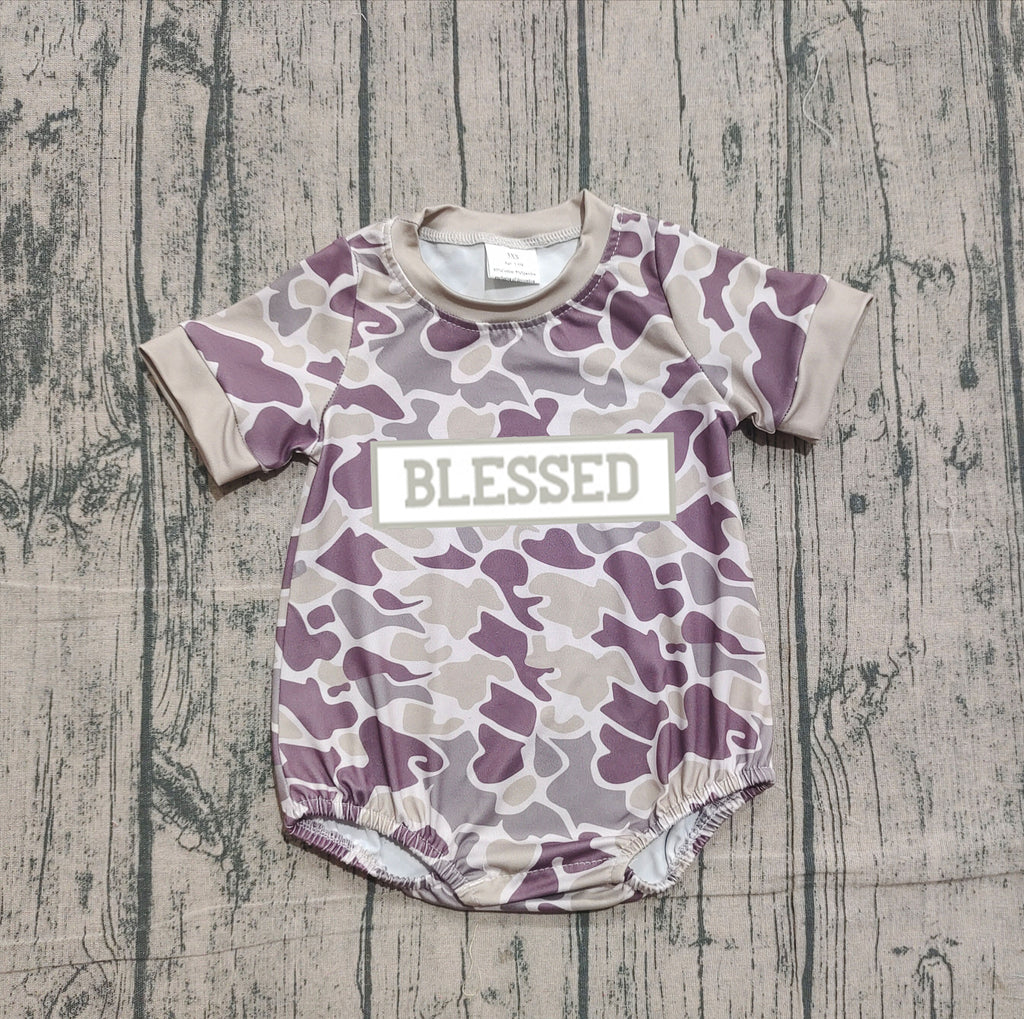 Preorder Samples SR3263 Embroidery Blessed Camo Baby Boys Romper