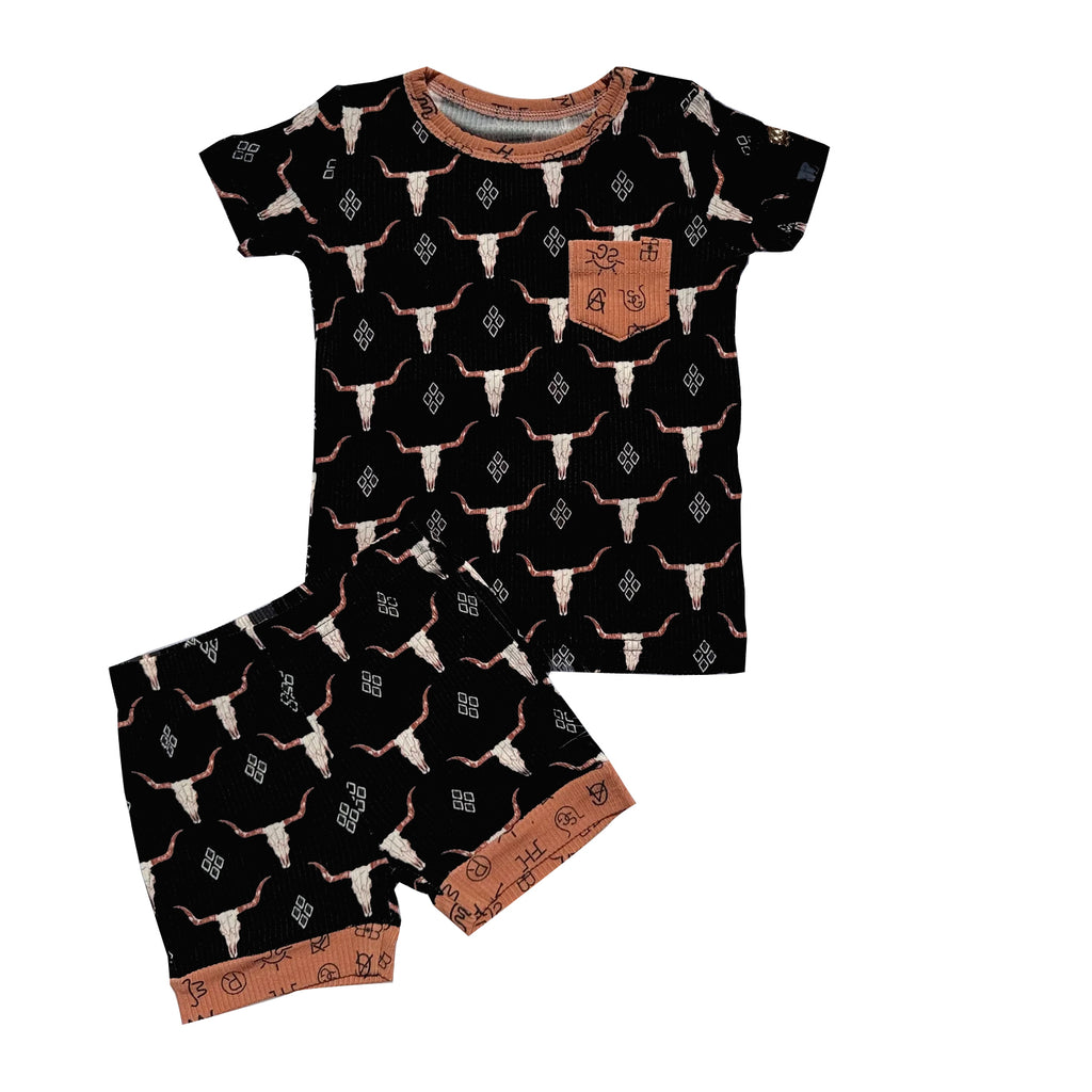 Preorder 10.21 MOQ 5 pcs BSSO1552 Skull Bull Black Boys Shorts Set