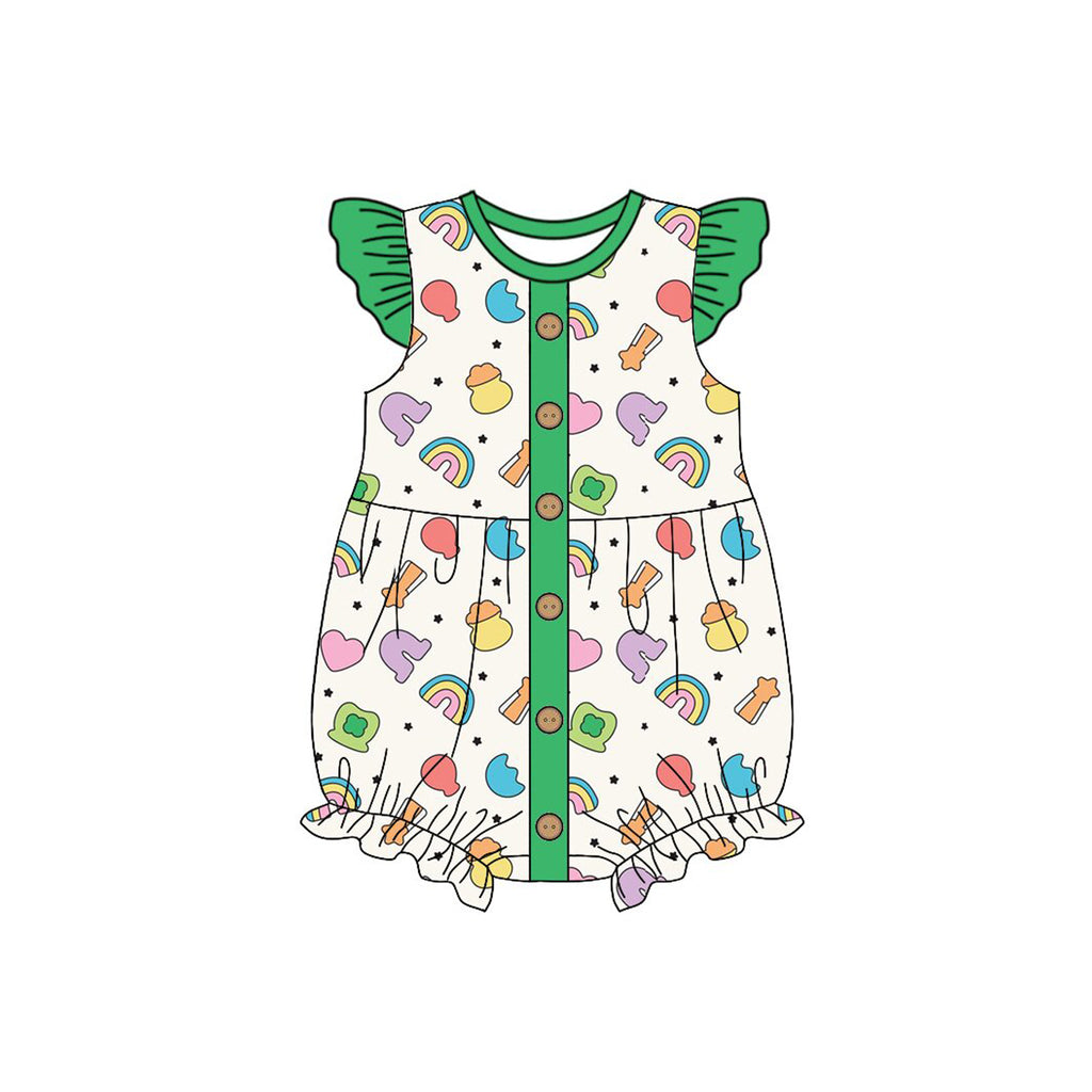 Preorder 10.23 MOQ 5 pcs SR3275 Lucky Girl Rainbow Green Baby Girls Romper