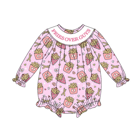 Preorder Samples LR2768 Smocked Valentine's Day Fries over guys Pink Baby Bubble Romper