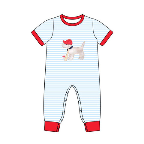 Preorder Samples SR3330 Embroidery Baseball Dog Red Baby Boys Romper