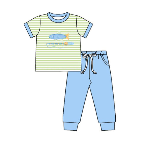 Preorder Samples BSPO0612 Embroidery Fishing Hook Blue Boys Set