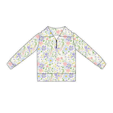 Preorder 11.17 MOQ 5 pcs GLD1420 Flower Orange Yoga Pullover Girls Skorts Set