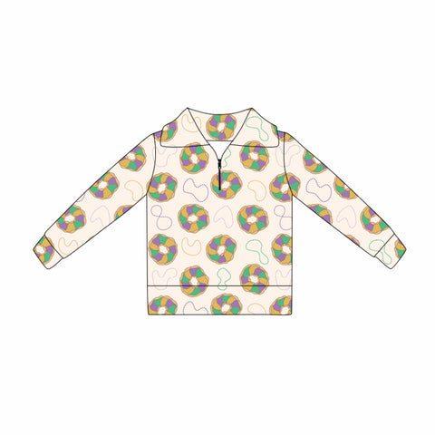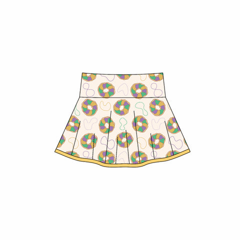 Preorder 11.17 MOQ 5 pcs GLD1398 Mardi Gras Dounts Yoga Pullover Girls Skorts Set