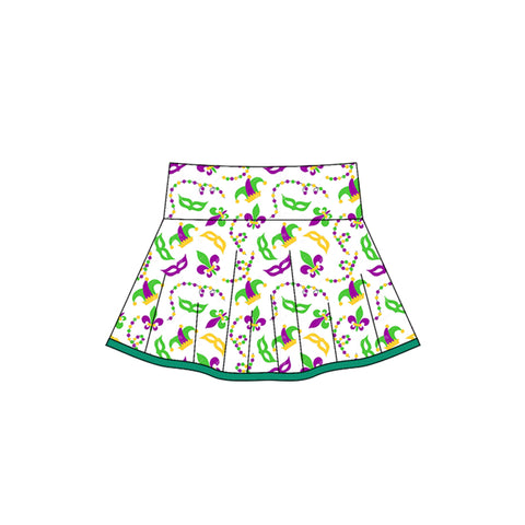 Preorder 11.17 MOQ 5 pcs GLD1396 Mardi Gras Mask Yoga Pullover Girls Skorts Set
