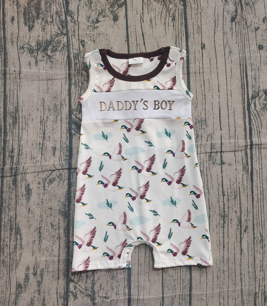 Preorder Samples SR3347 Daddy's Girl Mallard Ducks Bows Baby Boys Romper