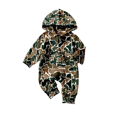 Preorder Samples LR2815 Hunting Camo Hoodie Zipper Baby Boys Romper