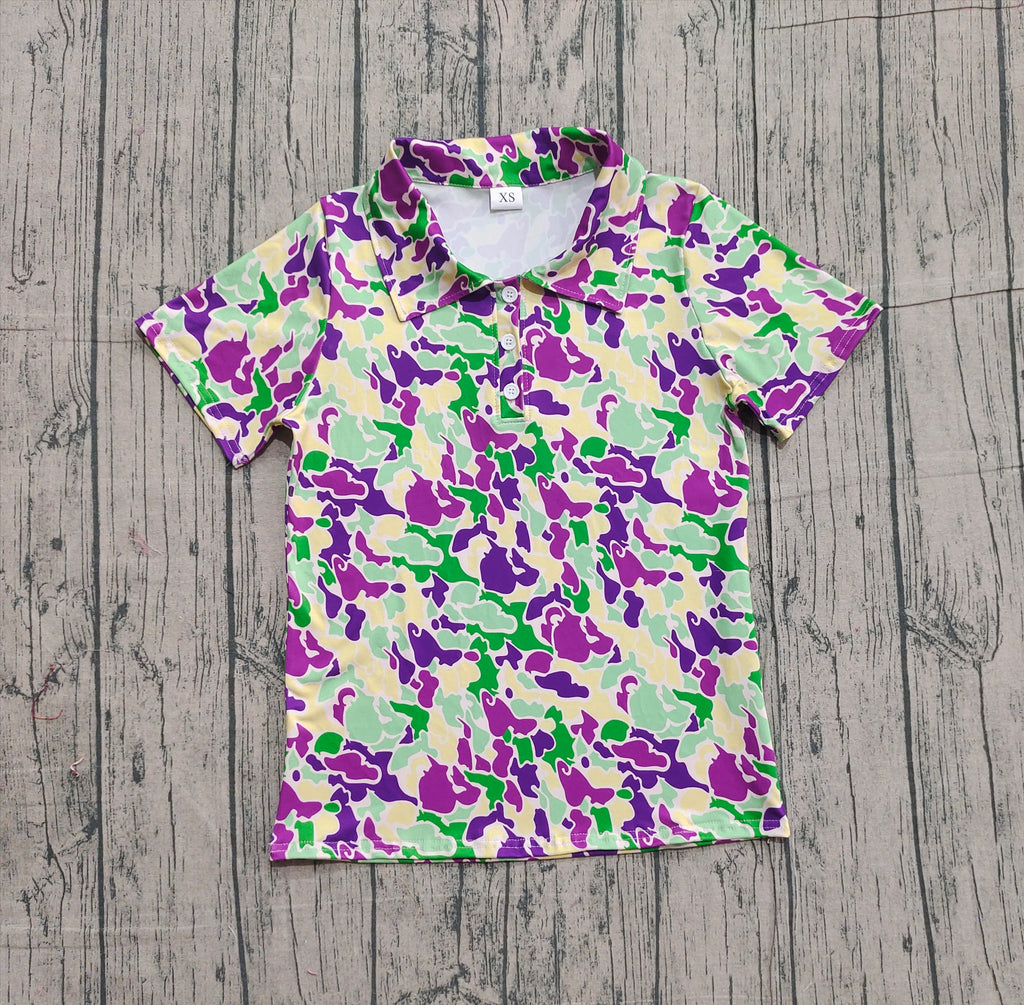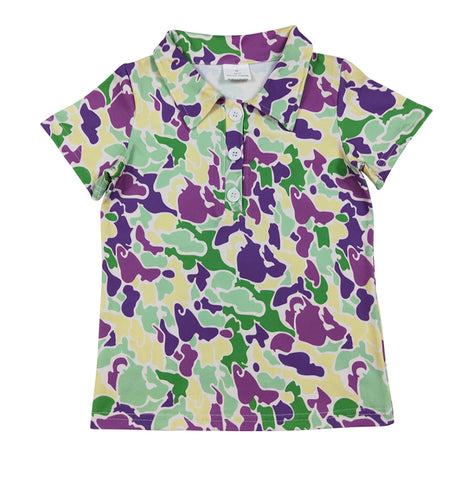 Preorder Samples BT1452 Mardi Gras Camo Polo Men Adult's Shirt Top