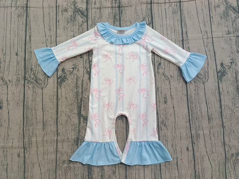 Preorder Samples LR2845 Coquette Bows Sky Blue Baby Girls Romper