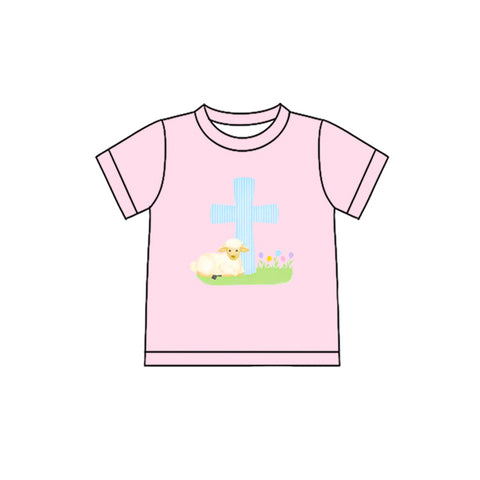 Preorder Samples GT1394 Easter Cross Sheep Pink Kids Girls Shirt Top