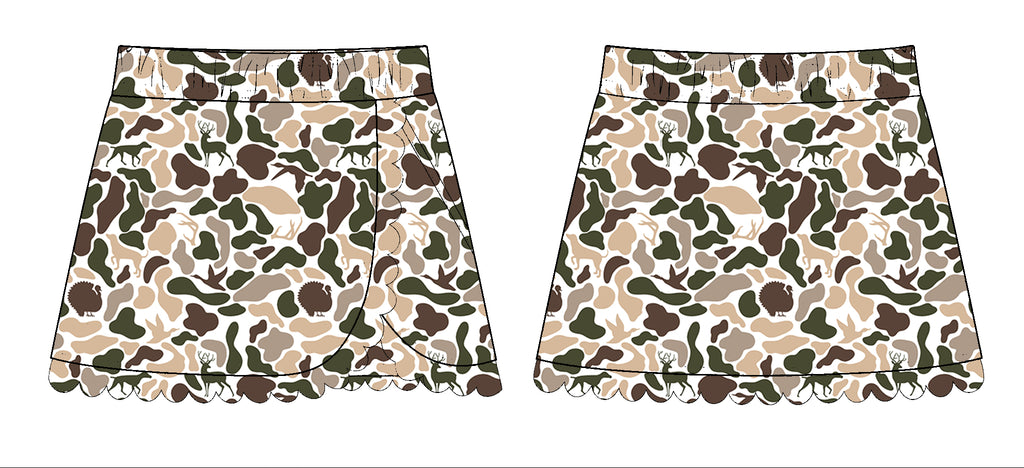 Preorder 11.28 MOQ 5 pcs GLK0176 Hunting Camo Dog Ruffles Yoga Girls Skorts