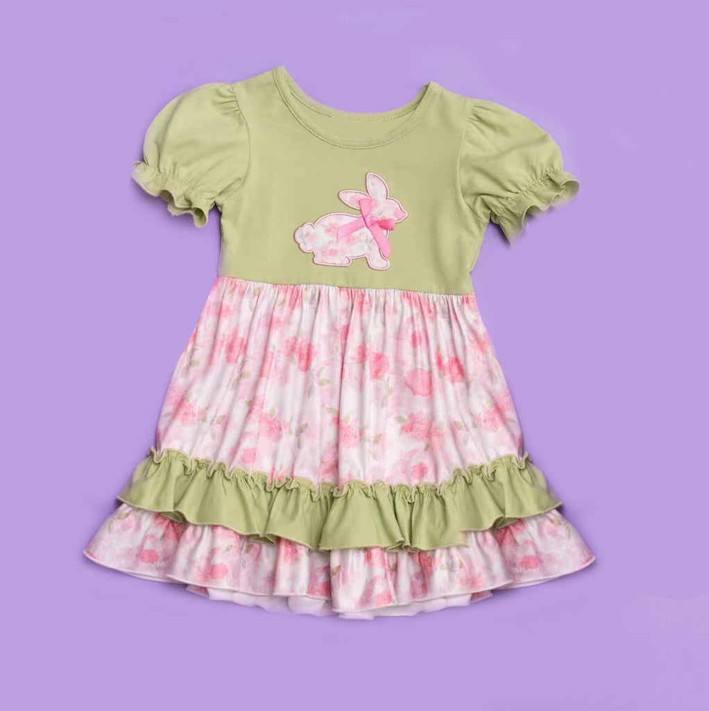 Preorder 12.01 MOQ 5 pcs GSD2996 Easter Rabbit Flower Green Girl's Dress