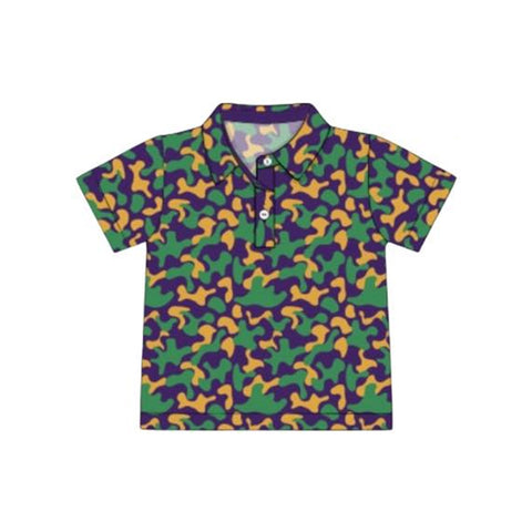 Preorder Samples BT1498 Mardi Gras Camo Buttons Kids Boys Shirt