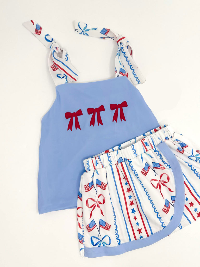 Preorder 12.04 MOQ 5 pcs GSD3025 4th of July Bows Flag Girls Skirt Set