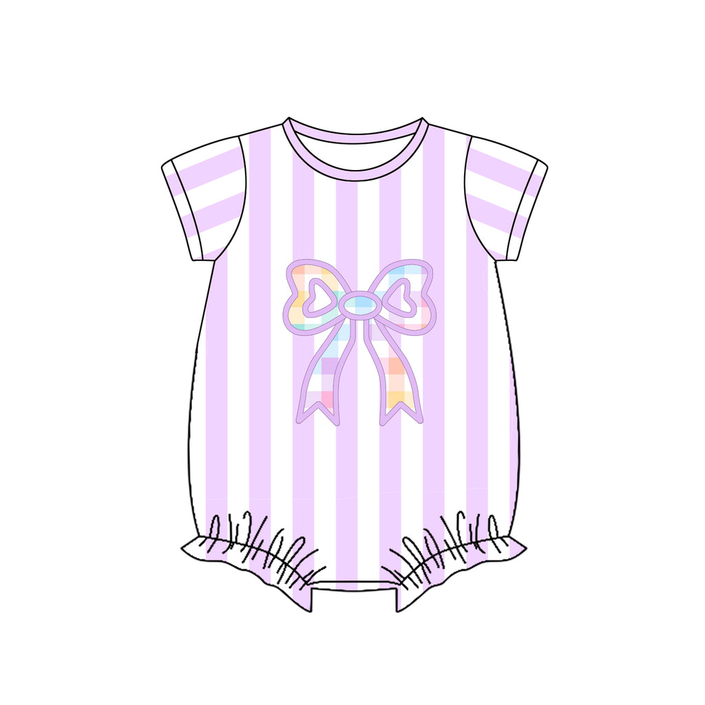 Preorder 12.08 MOQ 5 pcs SR3514 Bows Plaid Purple Baby Girls Romper