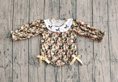 Preorder Samples LR2896 Embroidery Hunting Camo Mallard Ducks Baby Girls Romper