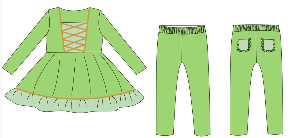 Preorder 12.08 MOQ 5 pcs GLP3130 Princess Green Ruffles Girls Set